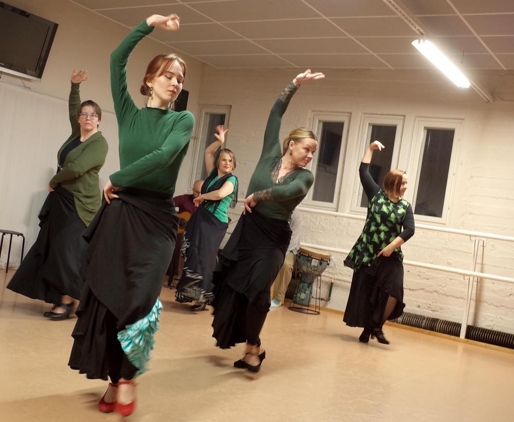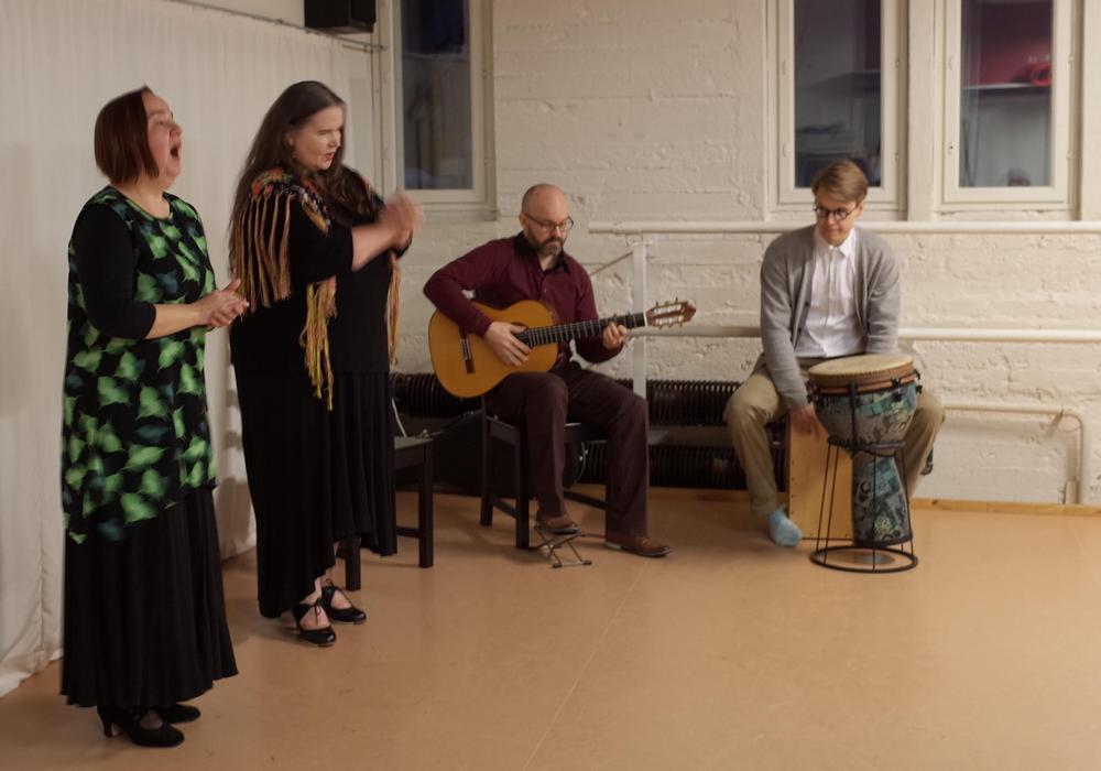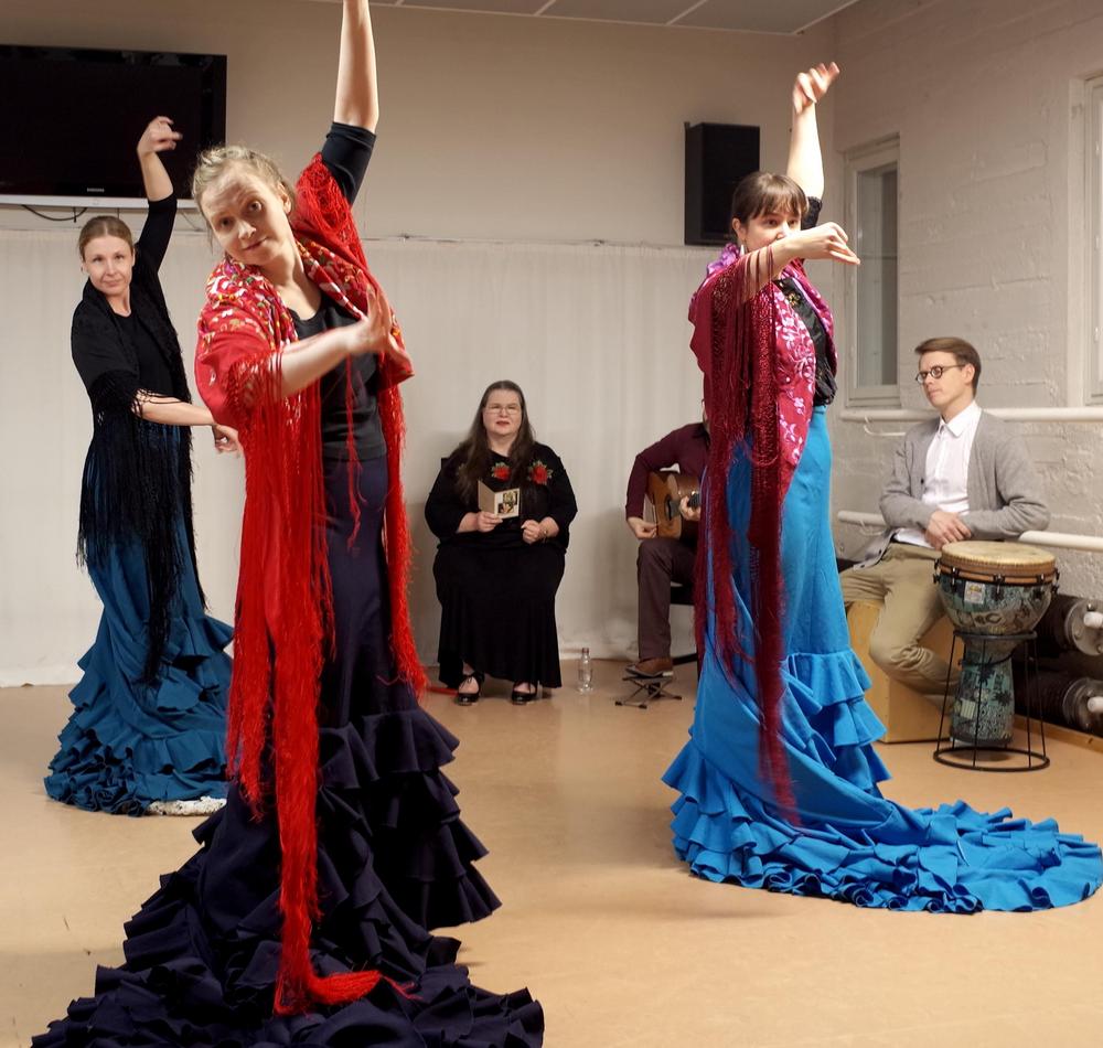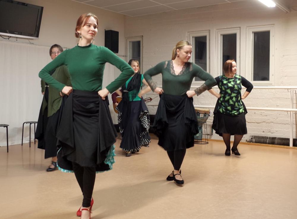 Tampereen Flamencoyhdistyksen Joulufiestassa nähtiin syyskauden tunneilla opittuja koreografioita ja lauluja.